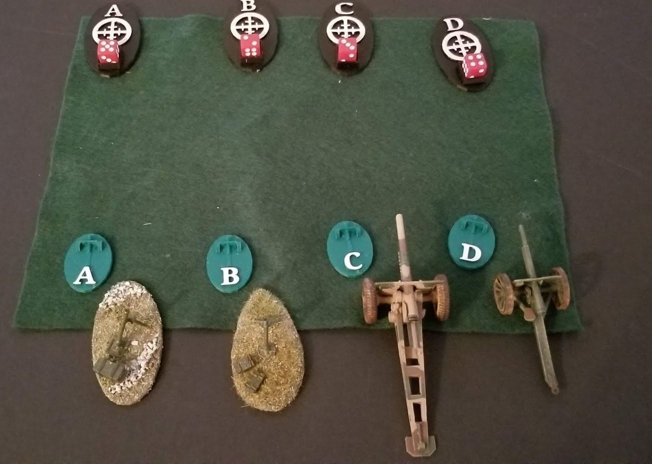 Dials are used in a similar way to both markers and damage rings and indicate what’s happening in the game as a whole. This kind of “stats” would relate more to groups of people like your army or villagers for instance and could involve keeping track of things like food, population, fuel and morale.