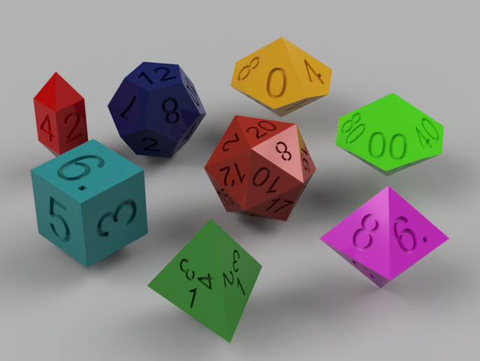 Again, design variations such as number of sides and color are down to personal choice and need. However, you don’t really want to be painting dice as this will impede a correct and fair roll. There are of course dice that you can buy that will light up when rolled but I wouldn’t necessarily advise trying to 3D print this type for yourself.